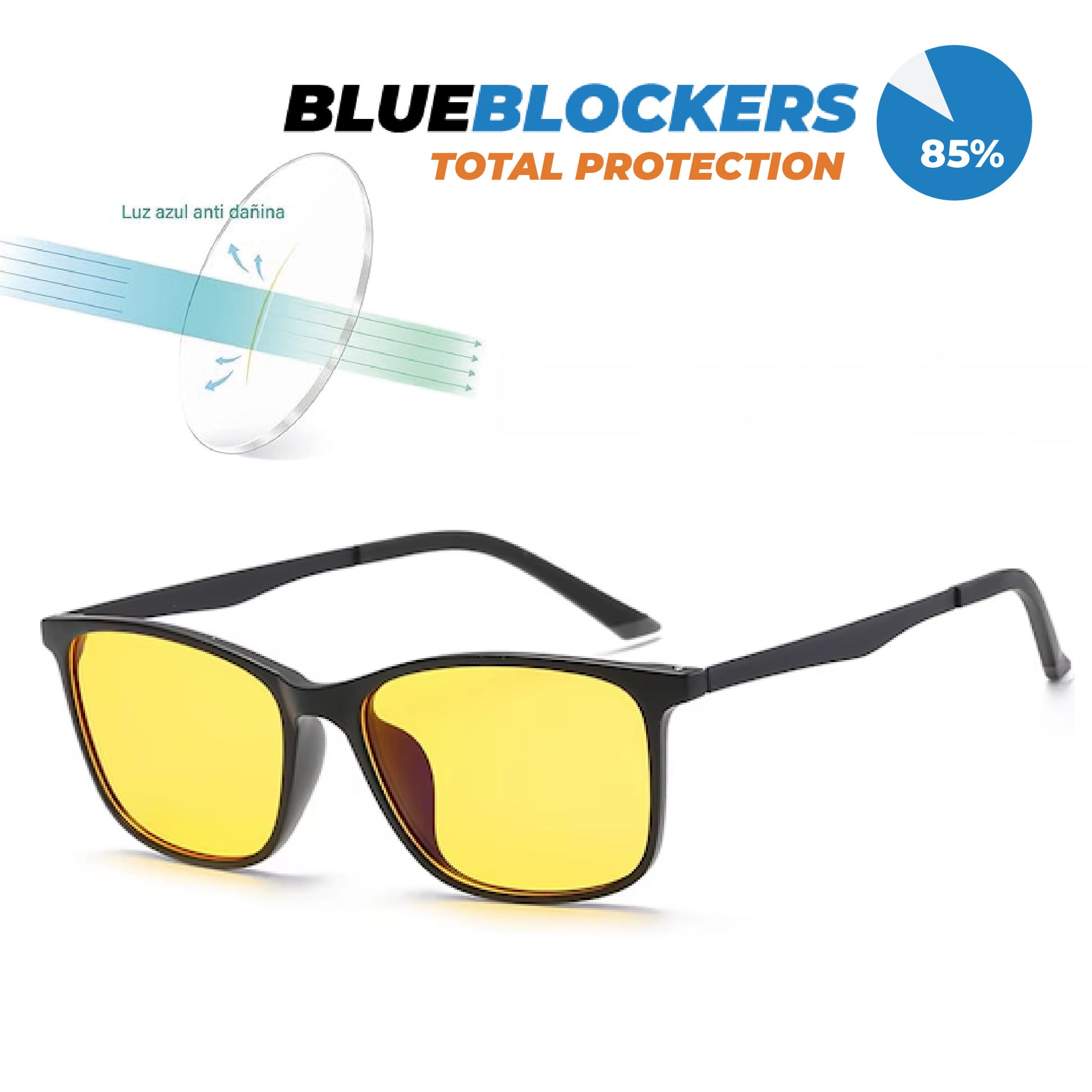 Lentes con filtros de bloqueo para luz azul, marco negro.