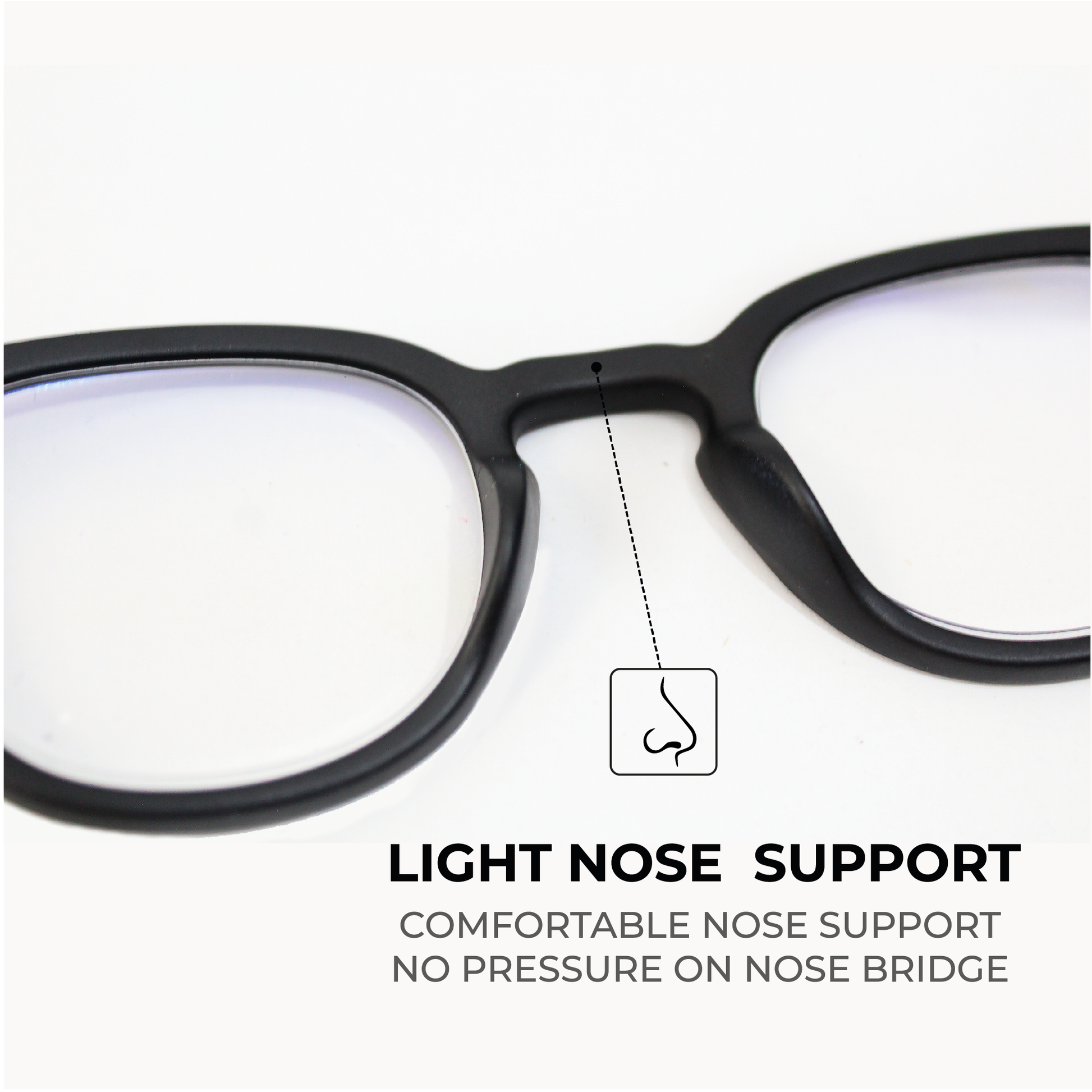 Prescription glasses with blue light protection in charcoal tone, lightweight with international FDA certifications, versatile, unisex.