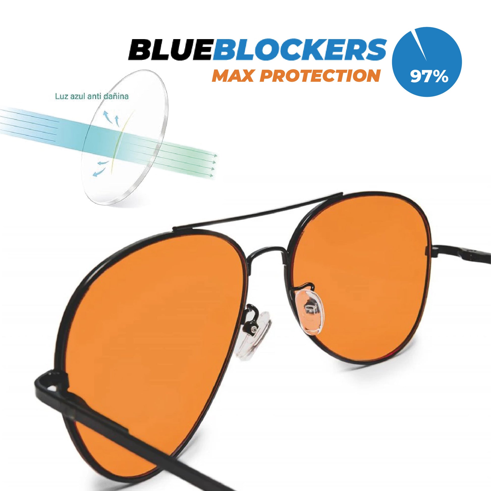 Glasses with blue light blocking filters, black frame