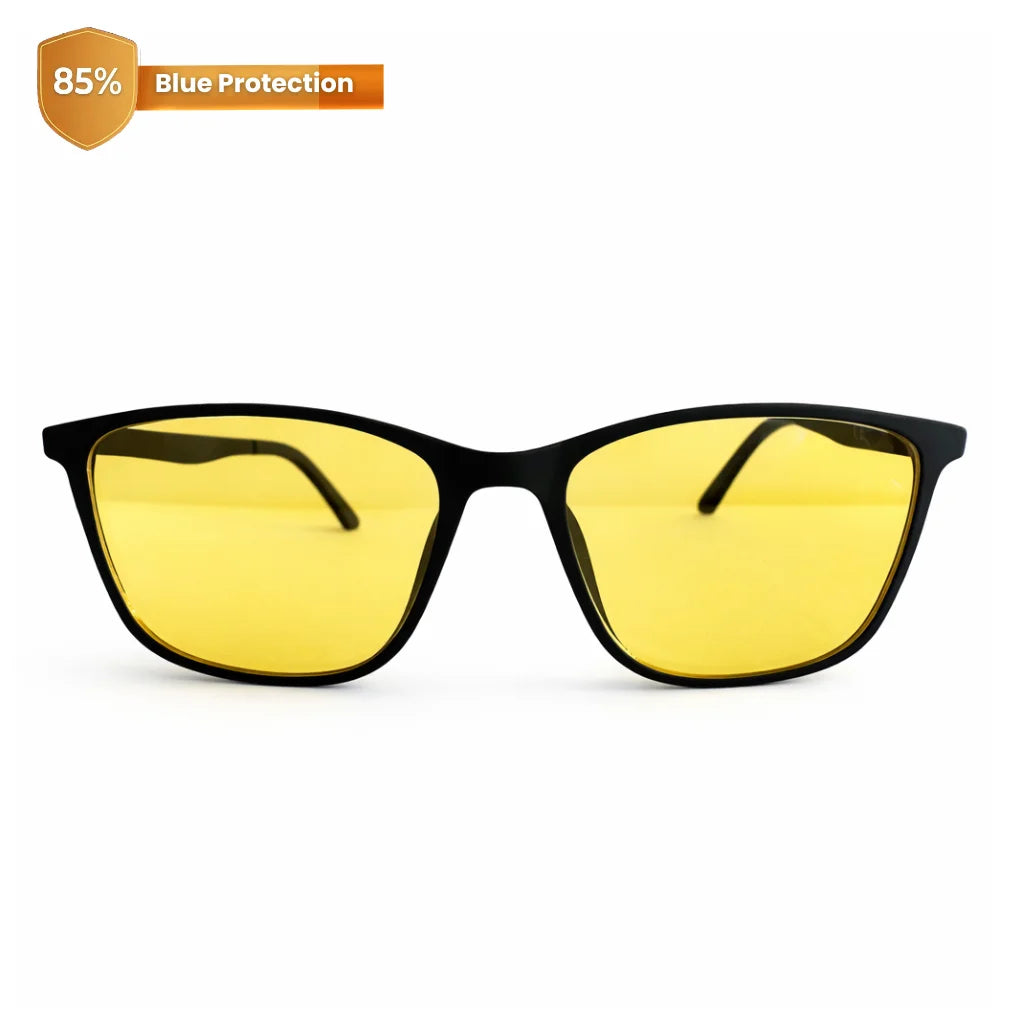 Lentes con filtros de bloqueo para luz azul, marco negro.